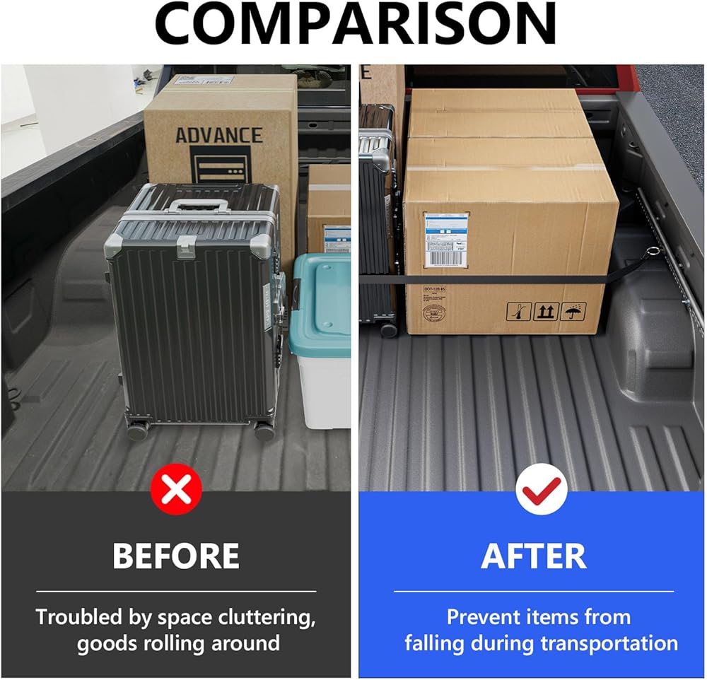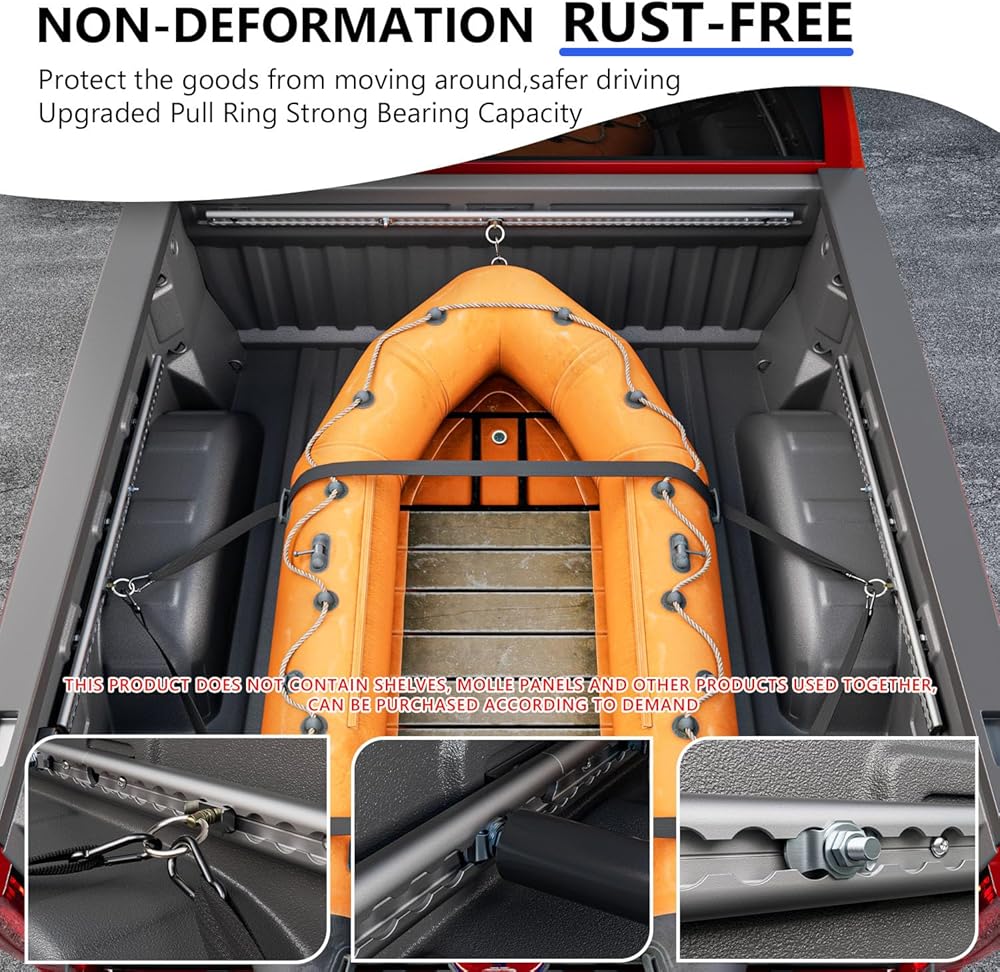 Function: The railing system replacement for 2019-2025 Chevy Silverado rail system is a great tool for managing truck space. The latch and screw we provide can slide and lock at multiple preset positions to achieve customized cargo loading. After installing the rail, it can prevent the goods from moving randomly during the car's driving process. It's like having an extra set of reliable hands in the back of your truck.