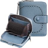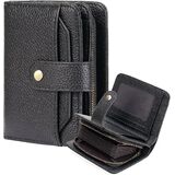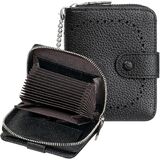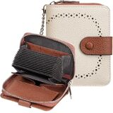 High-quality Leather Credit Card Holder for Women: The credit card wallet is made of soft premium quality PU leather fabric with a durable vintage brass two-snap button, smooth zipper, and a removable wristlet. Soft to the touch, portable, and durable.