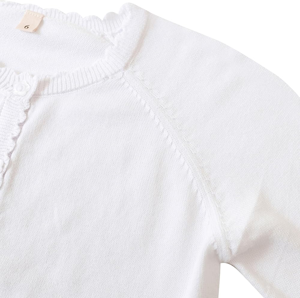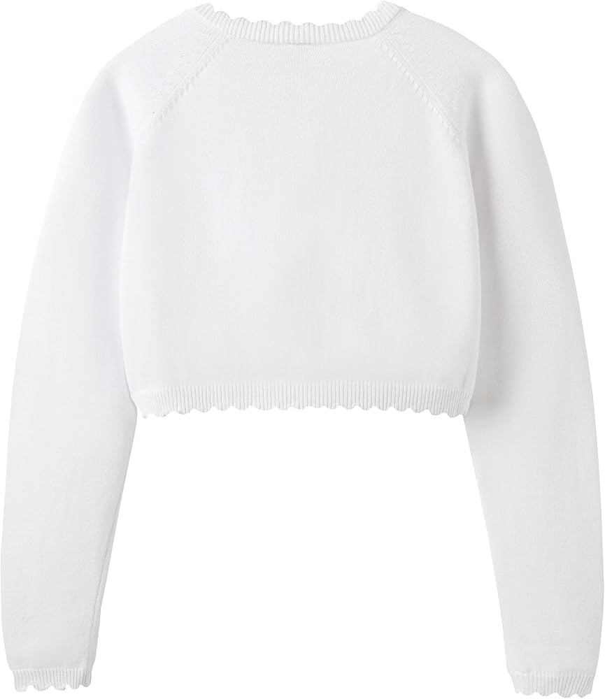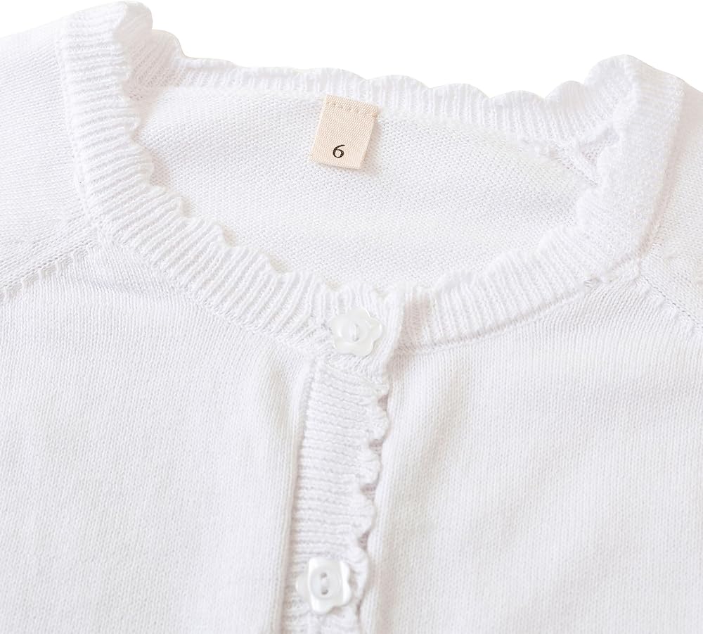Unique Design: This cardigan for girls features cute,petal-shaped buttons that are sewn with double stitching, ensuring durability.The nekline,cuffs,and hem are designed in a petal shape,complementing the solid color design,which makes it very adorable