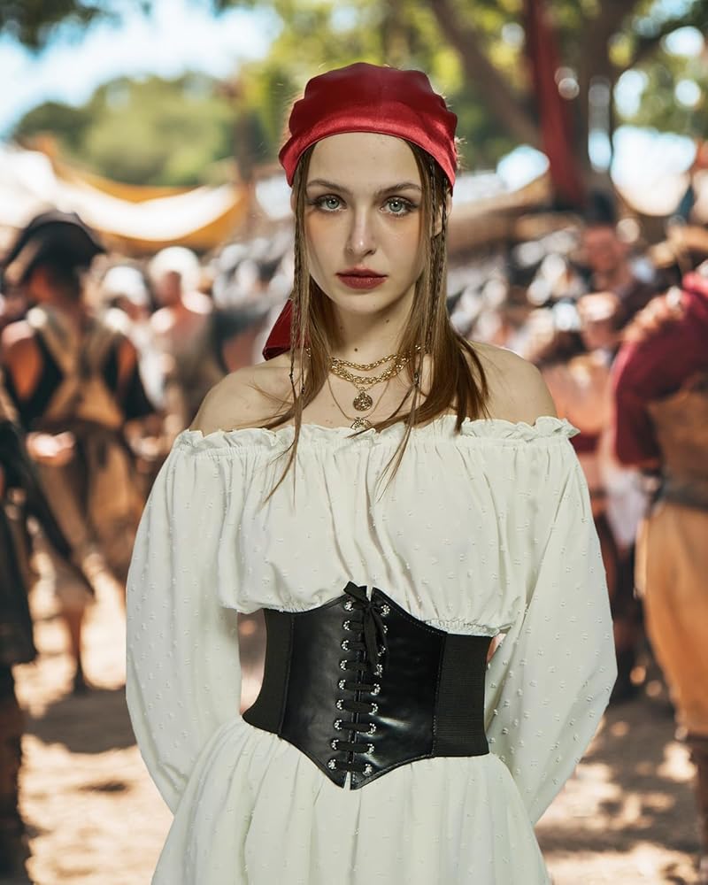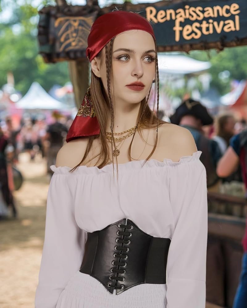Slimming Pirate Corset for Flattering Curve: The pirate corset not only enhances your shape but also adds a structured, authentic pirate aesthetic to your pirate outfit while ensuring comfort during extended wear,you also this corset can use to match daily wearing