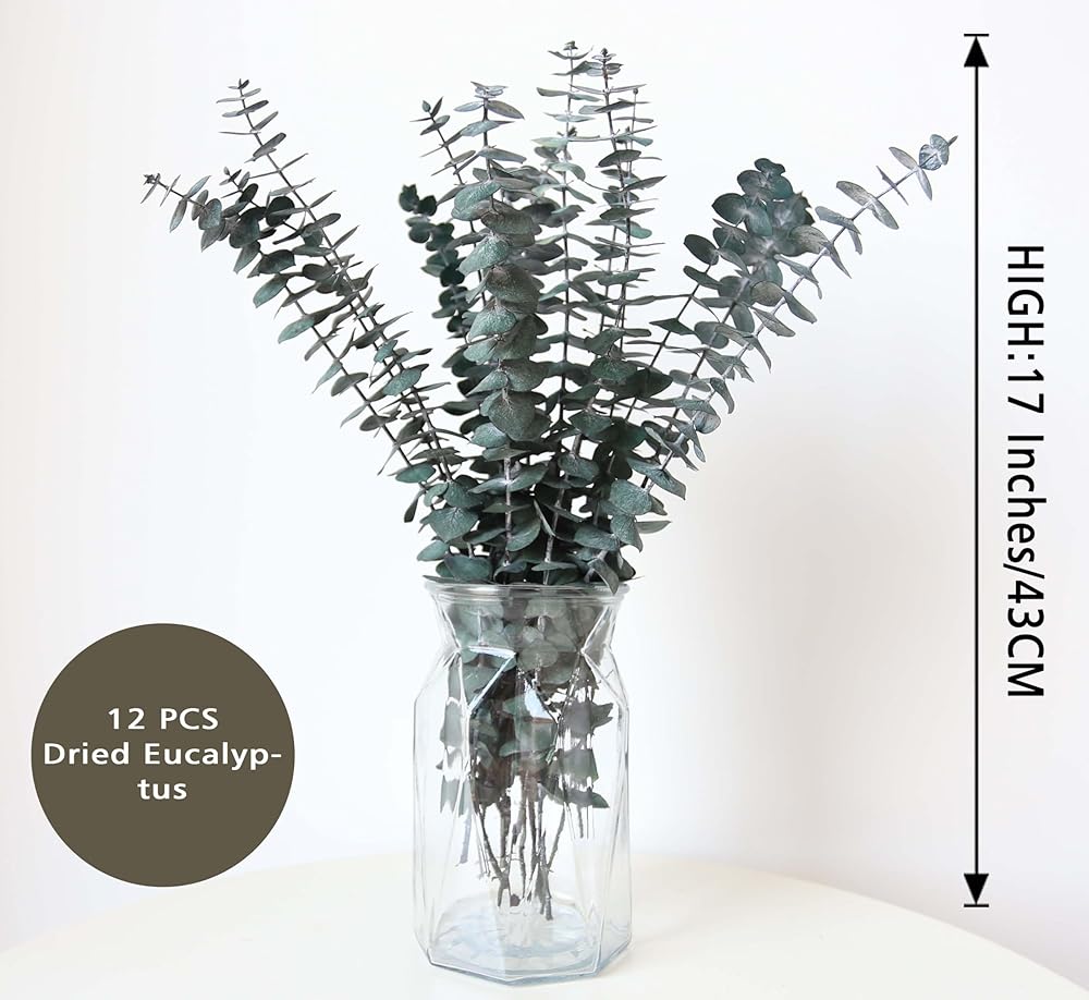 Dried Eucalyptus Stems For Shower 17" Real Leaves Branches For Vase Filler, Home Bathroom Wedding Arrangement Decor, 100% Natural Fresh Greenery Hanging Preserved Eucalyptus Plant