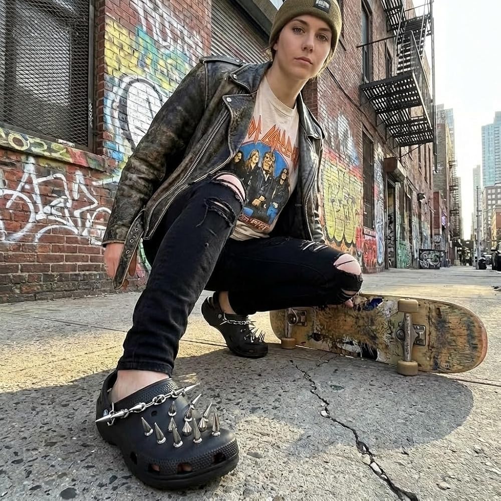 Package: You will get 28 pcs silver goth shoe charms and 2Pcs punk rivets shoe chain,Cool and punk charms will make your shoes stunning and unique.