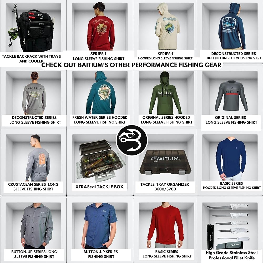 Introducing Baitium's groundbreaking UPF 50 Fishing Shirts for Men—crafted with the same eco-friendly 95% recycled polyester material. Our commitment to sustainability meets superior sun protection in these long sleeve shirts.Step into the great outdoors with confidence, knowing Baitium's fishing shirts offer more than just style. Engineered with advanced UV-blocking technology, these shirts shield you from harmful rays during fishing, hiking, or any outdoor pursuit.Baitium's dedication to the environment shines through in these shirts, designed to provide not only protection but also comfort. Lightweight and breathable, they ensure a comfortable fit while delivering top-notch sun protection with a UPF 50 rating.These fishing shirts represent our dedication to sustainable, durable apparel, ensuring you're ready for any adventure while supporting a healthier planet. Embrace the fusion of performance and eco-responsibility with Baitium's SPF-rated, eco-friendly long sleeve fishing shirts—your ultimate choice for sun-ready, environmentally-conscious outdoor wear.