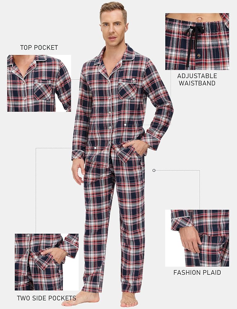 Comfortable Pajama Sets: The Mofiz Mens Pajama Sets are made of soft, breathable and comfortable 40 plaid fabric. The Long sleeve men's sleepwear are designed with a relaxed fit, let you move comfortably and have a good sleep.