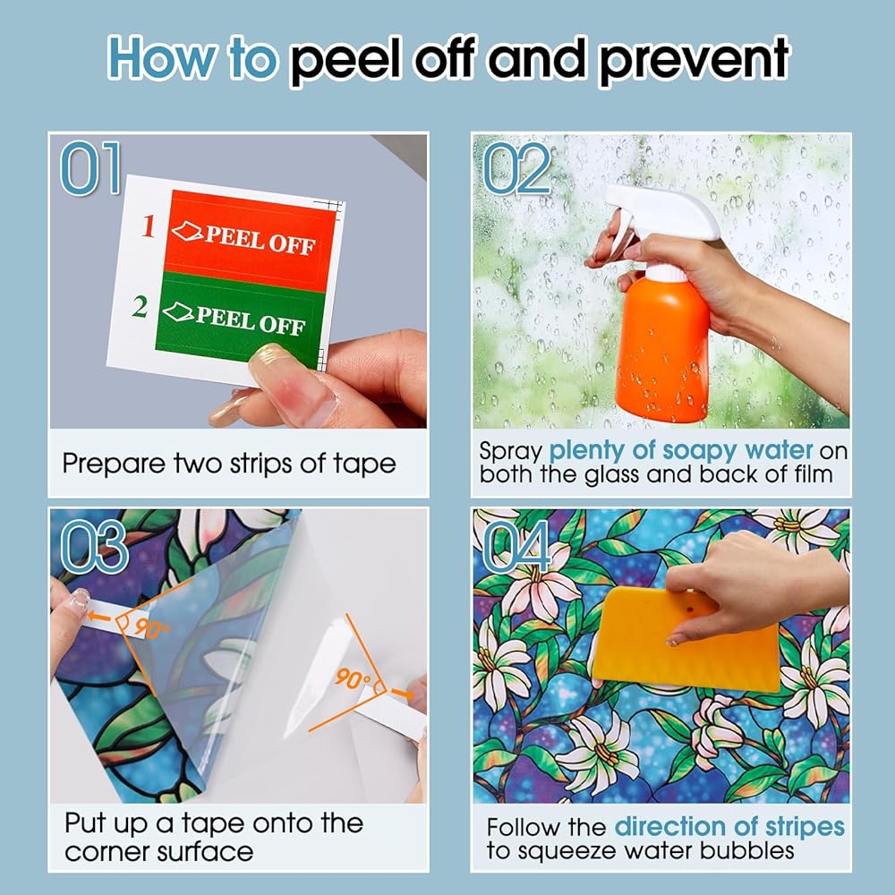 Easy Installation and Removal: Within 5 minutes, following the installation video, simply use water and static self cling adhesive to apply the film on any smooth glass surface without leaving any residue when peeled off and reusable