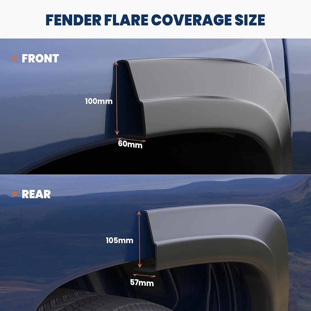 Powerful Look: Smooth black surface with stainless steel rivets, with tough profile, enhancing the vehicle's commanding presence. Paintable Design also could DIY for different colors.Including 2X Front and 2X Rear.