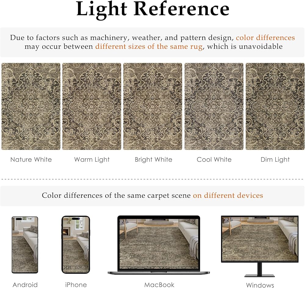 Non-slip Backing: This area rug has a non-slip TPR rubber backing with good adhesion,which helps to keep the rug securely in place on a variety of floors,such as wood,marble and tile floors.While it also prevents bunching,wrinkles and won't scuff floors.This makes it more practical and safer during daily use