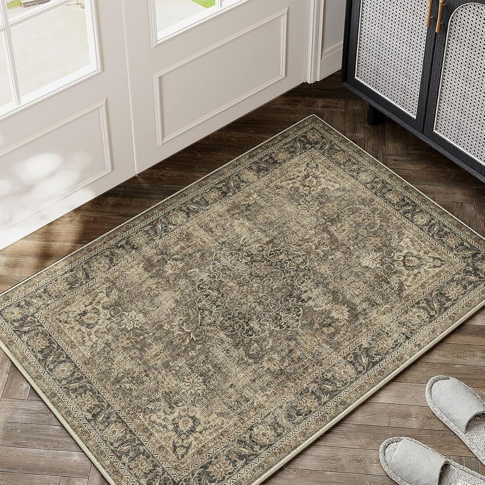 Soft Low Pile Surface: The thin throw rug is made of high-quality spill and stain-resistant microfiber,which immerses your feet in softness.Its 0.3" thick pile allows for convenient placement in entryways,underneath furniture,while it will reduce hiding places for dirt or hair,making it a comfortable addition to any room