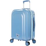 Stay stylish and organized on your travels with this light purple Disney Stitch 22" rolling luggage. Featuring an image of Stitch leaning against a surfboard, this luggage combines fun design with practical features. It comes with 8 wheels for smooth maneuverability, a retractable handle, and a durable molded exterior. The expandable interior offers extra space for your essentials, while the wipeable surface ensures easy care. Measuring 22" H x 13.5" W x 8.5" D, this luggage is perfect for all your travel needs.