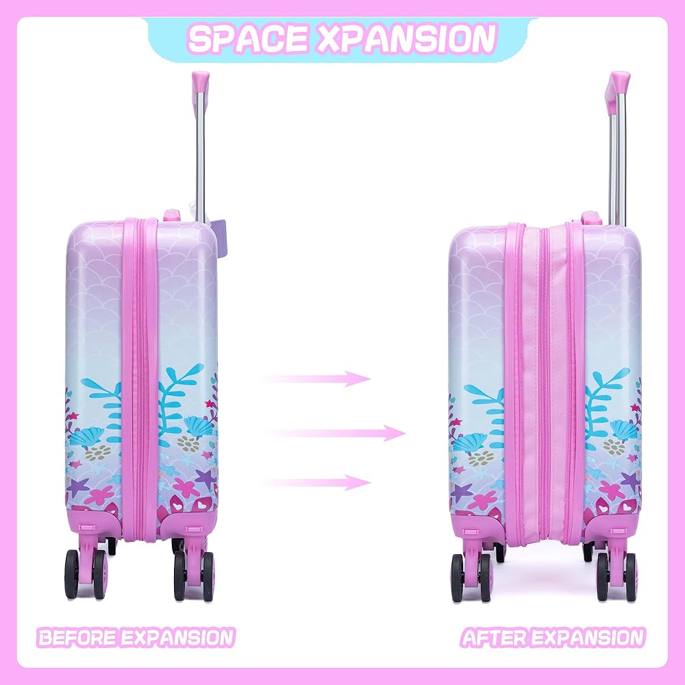 Durable and lightweight design: Made from high-quality materials, this luggage set is built to withstand the rigors of travel and easy for kids to carry. Carry On Suitcase: Cabin sized, 4 Wheels, Hardside