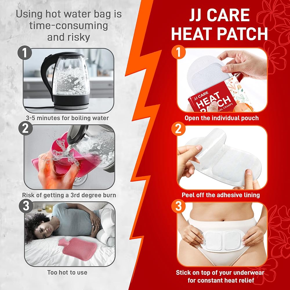 JJ CARE Heat Patch for Menstrual Cramp Relief (12 pcs Large), Menstrual Period Cramps Relief with Air-Activated Carbon, Menstrual Heating Patches for Period Cramps - 3.74 x 7.87 inches