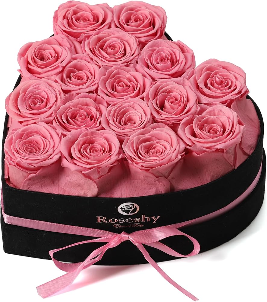 Heart-Shaped Gift Box: The set includes 16pcs of forever preserved roses beautifully arranged in a heart-shaped gift box, perfect for romantic occasions.