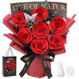 Forever Real Roses Bouquet: Carefully picked at their peak bloom, this fresh bouquet is skillfully preserved to keep their natural appearance bright color intact for years, without the need for watering or sunlight. These roses symbolize everlasting beauty, strength, and love, creating a powerful statement, it will stay for 3-5 years