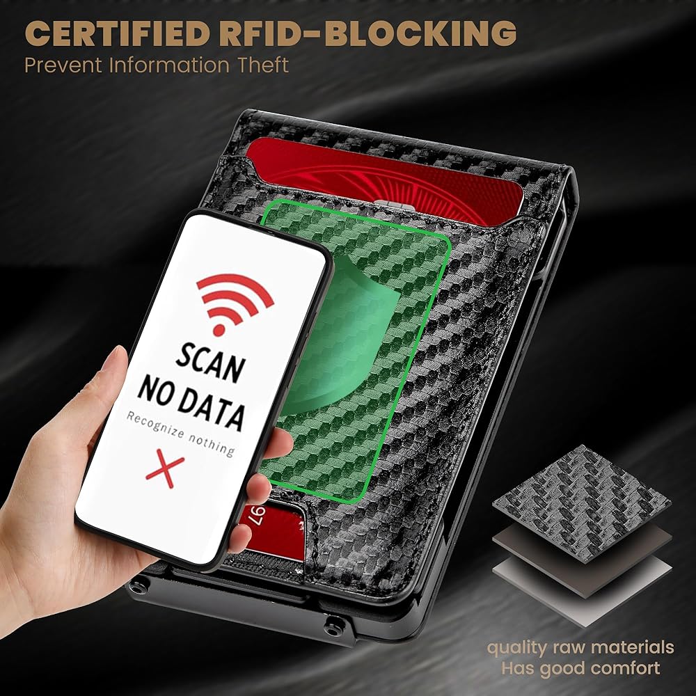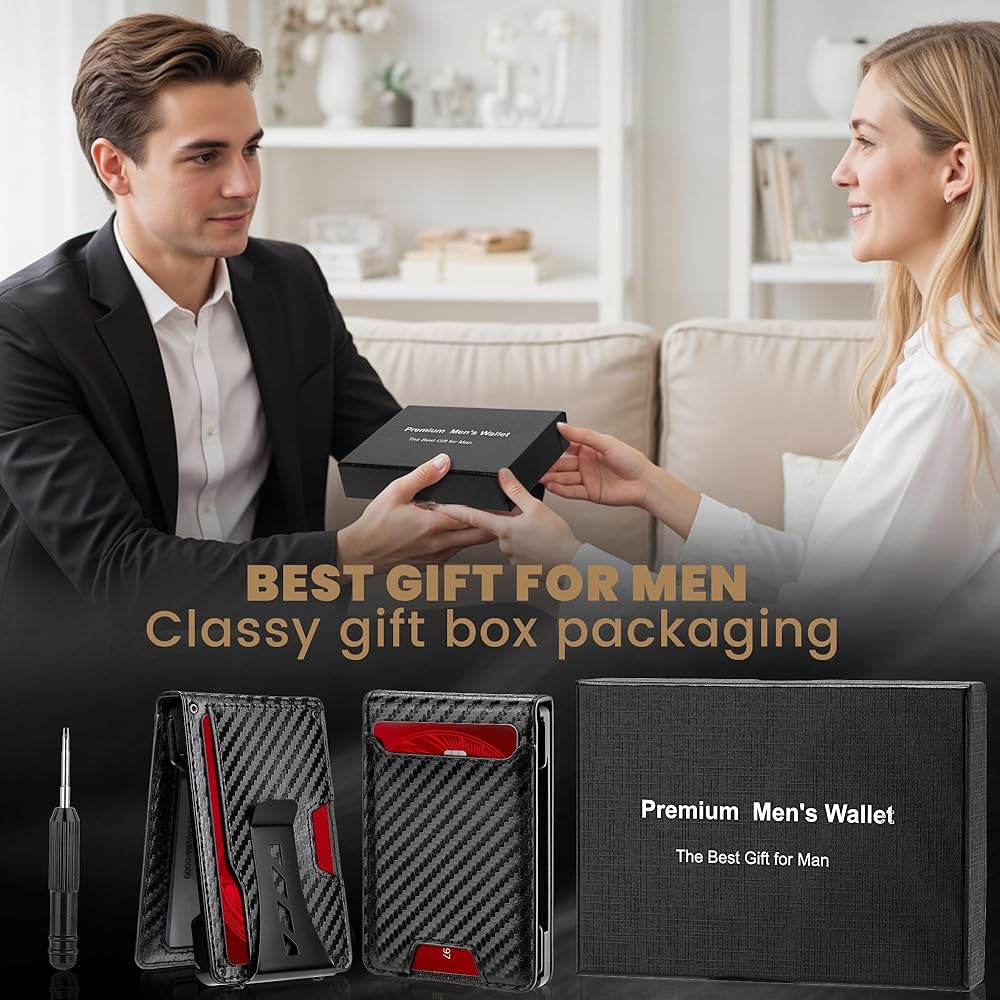 Wallet for Men Newly Upgraded Magnetic Minimalist Slim Men’s Wallet, RFID Blocking Mens Wallet with Money Clip & ID Window, Metal Compact Wallet with Nice Gift Box (Carbon Fiber)