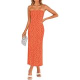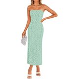 This sexy midi dress comes with strapless, off shoulder, boho floral, with elastic band at bust, backless, slim fit hugs your figure well, midi length, simple style, all these features can help you exude your charming effortlessly