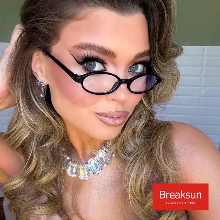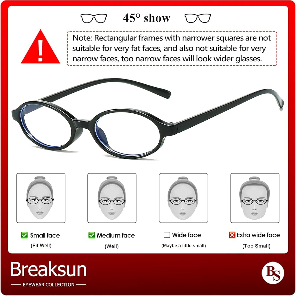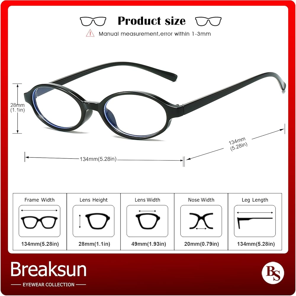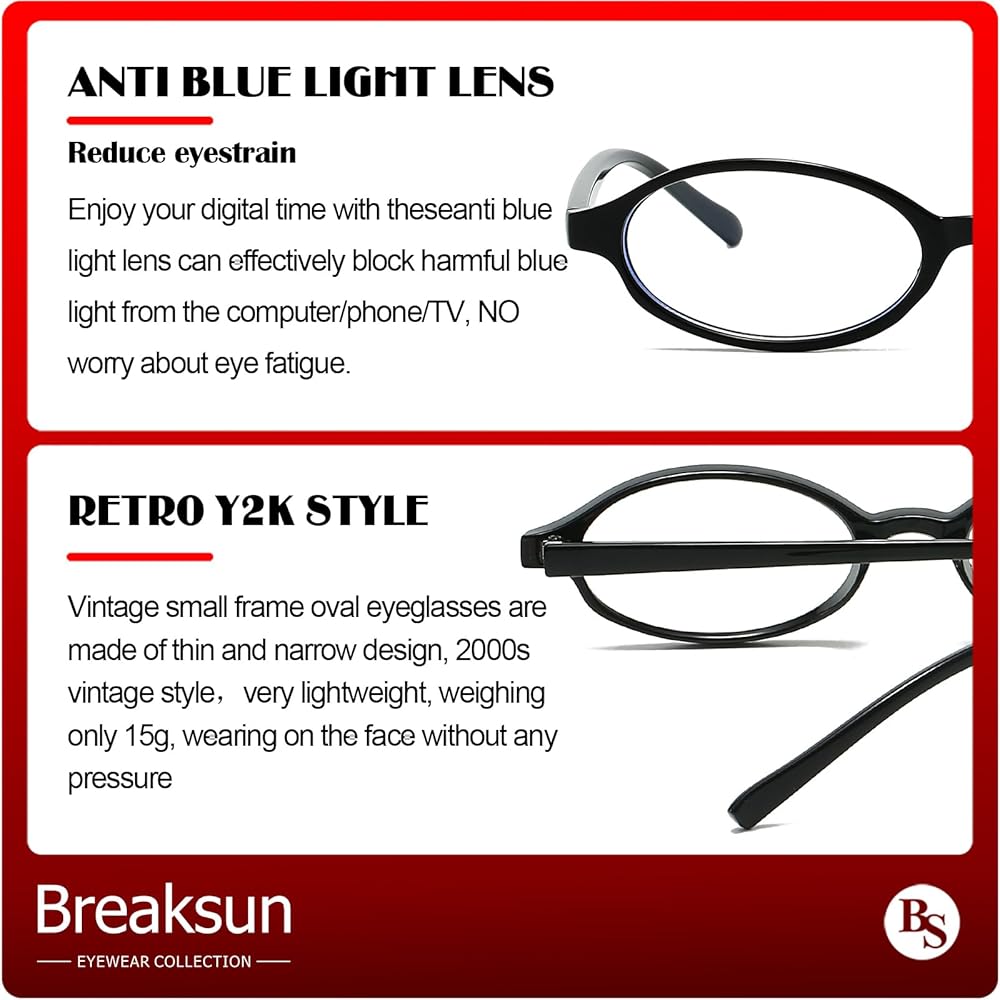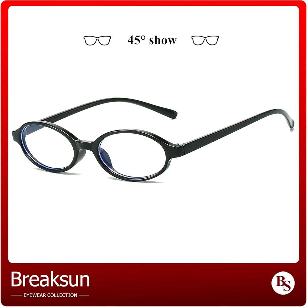 BLUE LIGHT BLOCKING GLASSES: Breaksun oval shape computer screen eyeglasses can effectively block harmful blue light from the computer/phone/TV, avoid harmful light directly into the eyes, protect your eyesight from being affected, make you to complete work efficiently and easily.