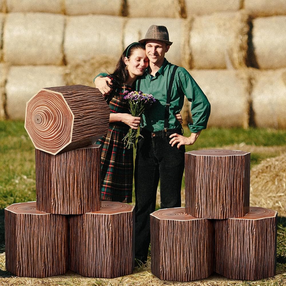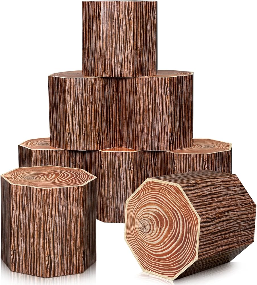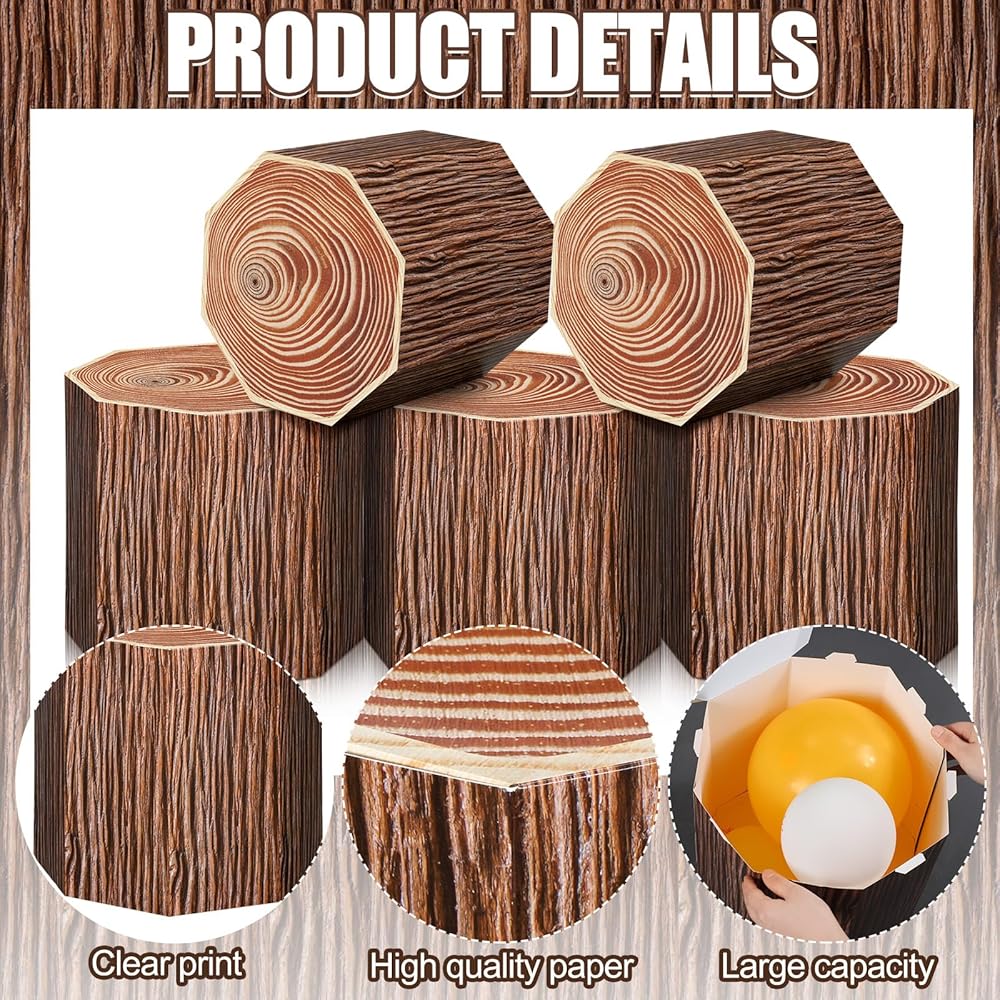 Fake Stump Boxes Decor: our fake paper stump boxes decor is designed in the shape of a tree stump, and printed with bark and stump patterns; The texture and distressed feel of the stump are clearly visible, vivid, and very realistic; No matter where it is decorated, it will add color to your western cowboy party decorations party and make people shine