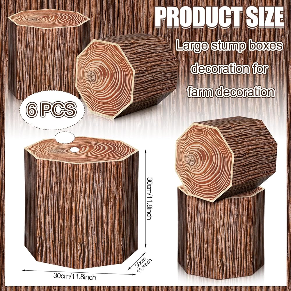 Wide Range of Usage Scenarios: our imitation tree stump shape boxes are very suitable for western theme party decorations; It is also suitable for birthday parties, baby showers, weddings, farm parties and other scenes; As props to display your party gifts or party surprises, make your party full of atmosphere