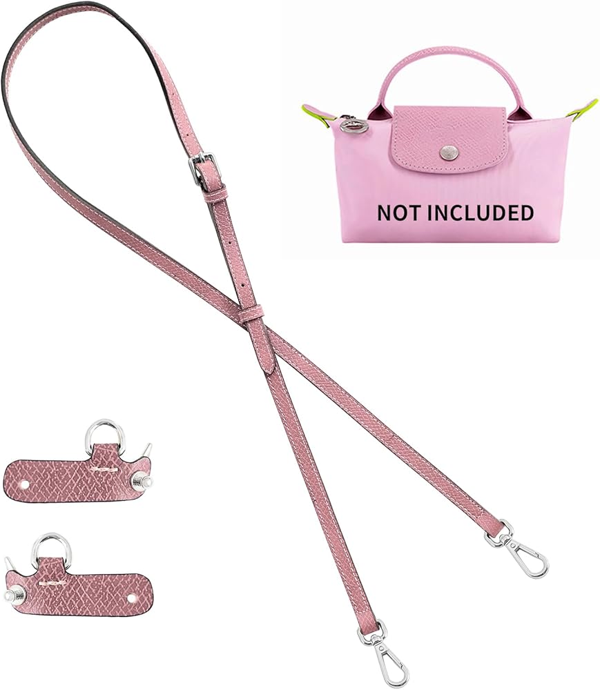 Top-Grain Leather Strap for LongChamp Mini Pouch, Upgraded Buckles Mini Bag Adjustable Crossbody Shoulder Straps Conversion Kit Replacement (Deep Powder, XS)