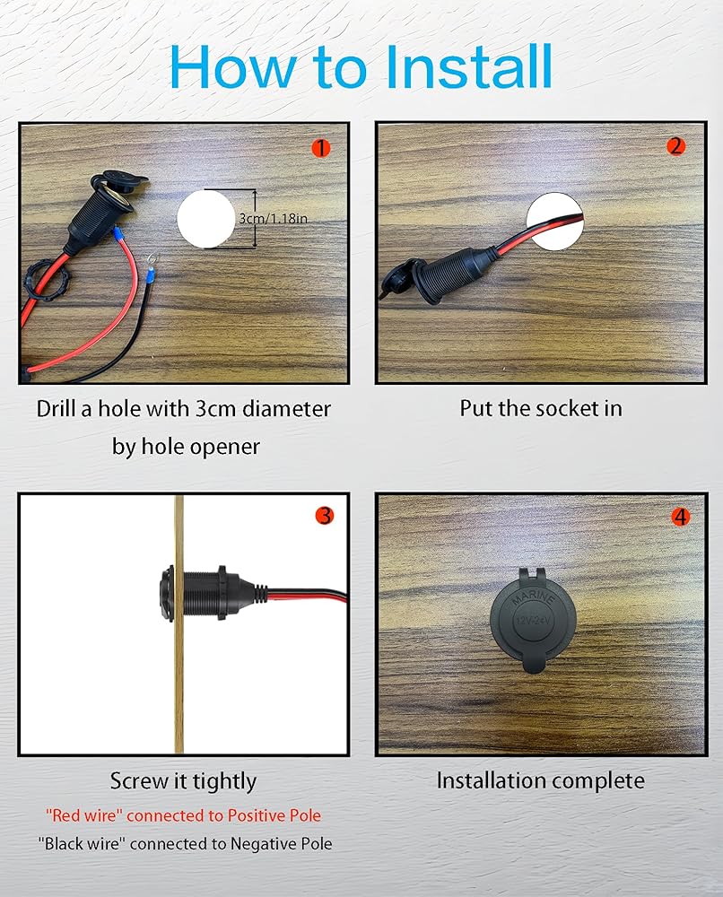 【Package List & Free Return】Package Includes: 1* 3Ft 12V/24V Fixed Thread Cigarette Lighter Socket, 2 pcs fuse (spare). 360 days return and exchange freely,If for any reasons you are not satisfied with our 12v socket extension cord, please contact us first, we will support you friendly customer service.