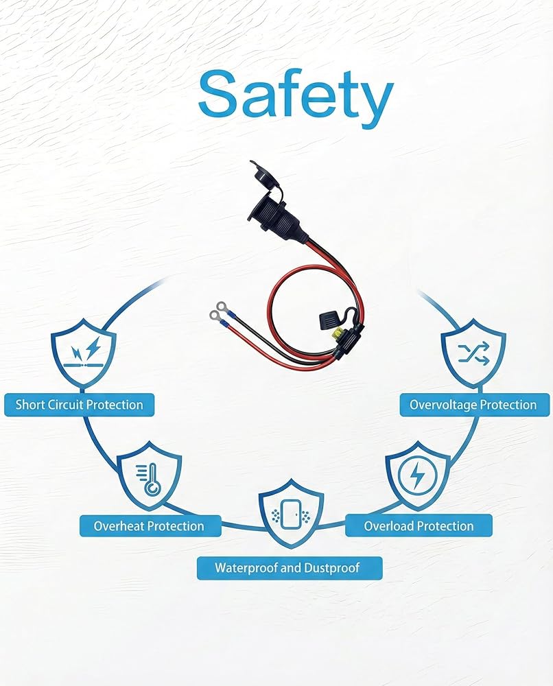 【Safety Protection】12v power outlet extension cord built-in 20A fuse can efficiently protect against overcurrent and short circuit with additional 2 pcs spare fuses.