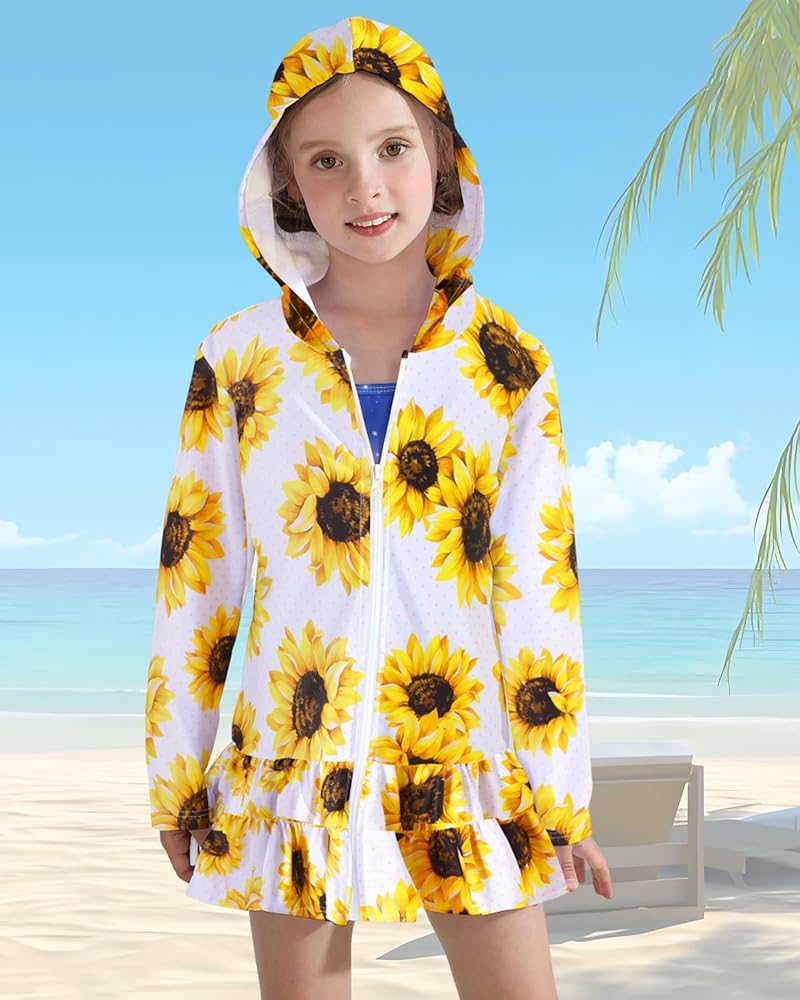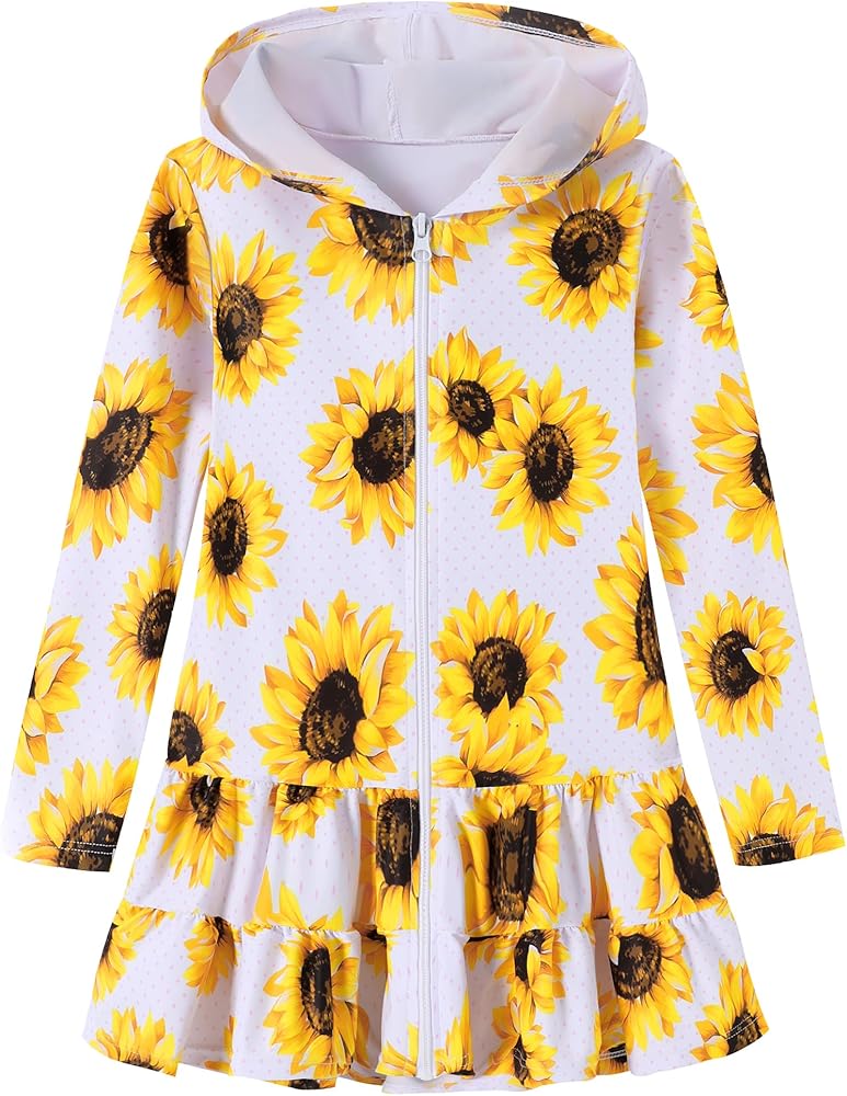 Beach Days: This kids long sleeve cover up with hood and a tiered ruffle hem offers a good idea for layering over swimsuits during summer outings. Perfect for lounging after a swim or sunbathing at the beach. Cute and functional.