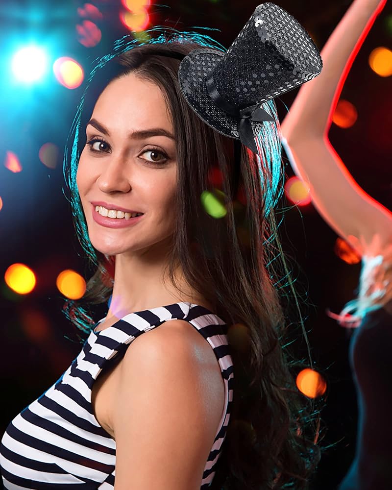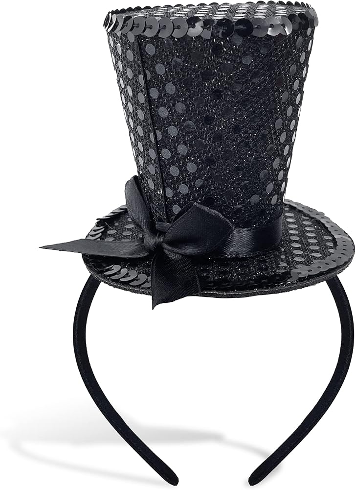 Be the life of the party with this Novelties Costume black sequin miniature Top Hat on headband!