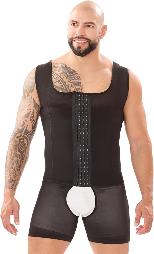 Efficient Body Shaping: This is a man girdle designed to provide you with a sculpted physique. As a body shaper men, it is effective in compressing and shaping your body, making you look fitter and well-toned. This shapewear has 2 lines of hooks in the front, abdomen, chest, and back control, plus boxer briefs for a more complete garment. It is ideal for daily and post-surgical use.