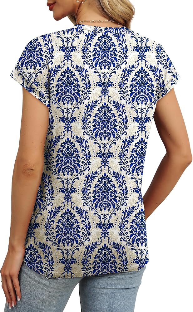 Material: Print Tops-95% polyester and 5% spandex,Solid Color Tops-60%Polyester,35%Rayon,5%Spandex. This T-shirt is soft and skin-friendly, breathable but won't see through, and will give you comfort throughout the day