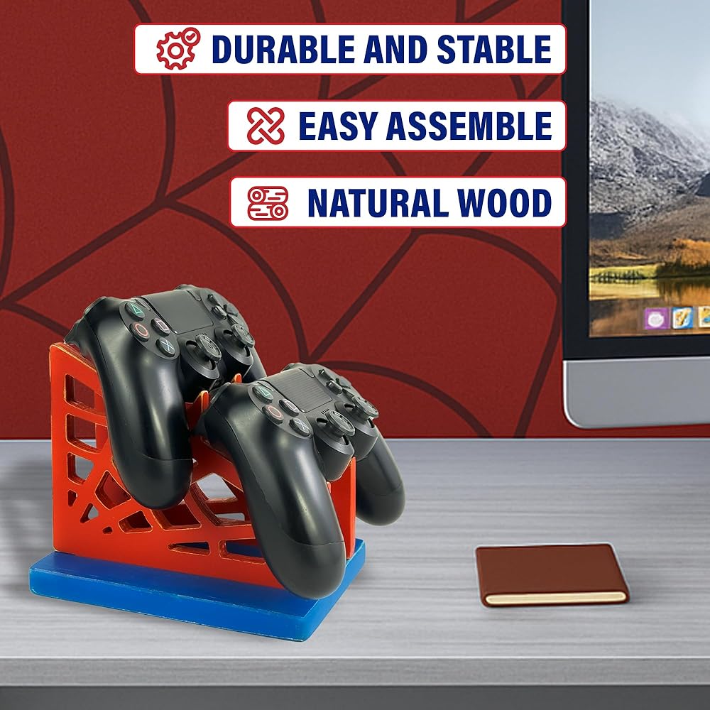 Gamer Gift for Men Teenage Boy Wood Controller Organizer with Headphone Holder & Game Controller Stand - Unique Gift Idea for Husband, Boyfriend, Gamers, Game Lover, Gaming Accessory (Spider)