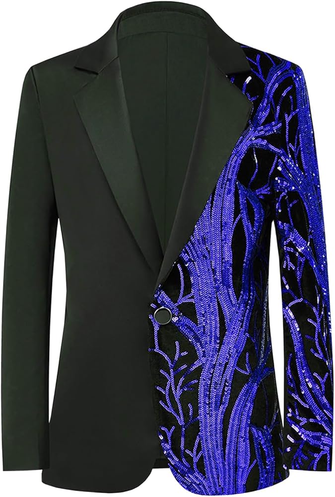 The boys shiny sequins suit jacket with elegant notched lapel,1 exquisite button, features sequins pattern of tree and wave design; full shoulder design and slim cut with 3D draping. When you put it on, it make you slimmer and sharp.