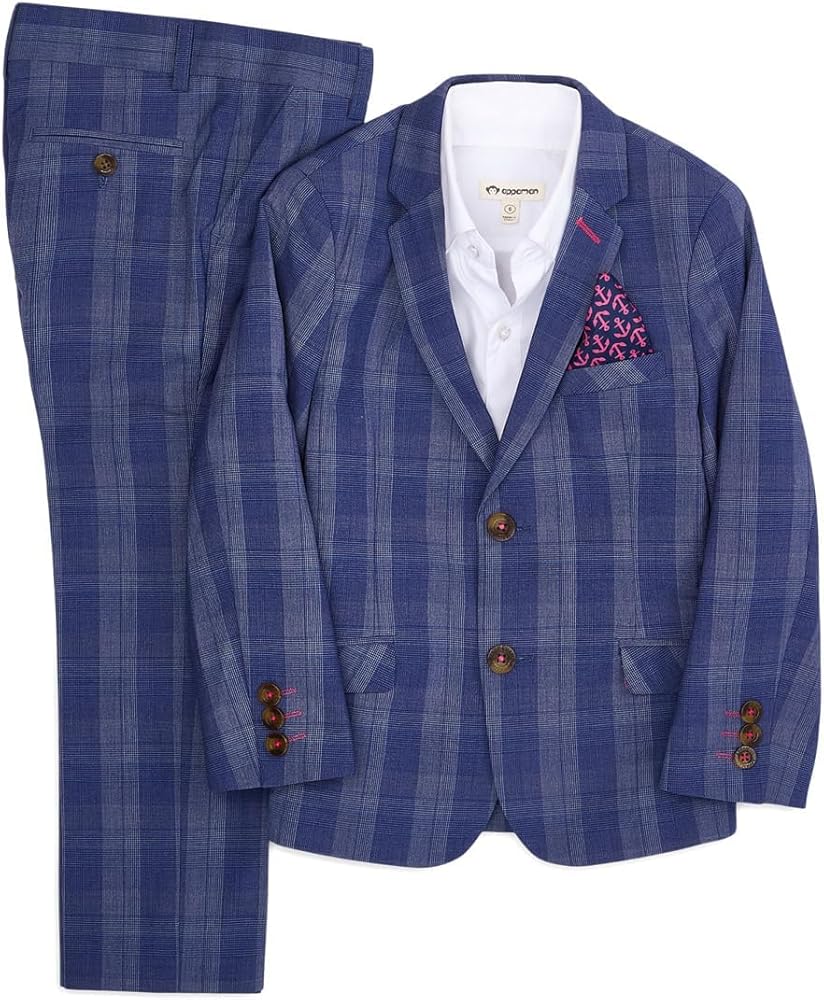 Transform your child's wardrobe with the Appaman Kids Two-Piece Stretchy Mod Suit, a sophisticated boys formal outfit designed to make your little one shine at any event. This kids black suit is tailored with a slim, European cut, perfect for weddings, parties, or any special occasion where a touch of class is required. The suit consists of a stylish top and a pair of sleek bottoms. The jacket features a classic notch lapel collar, double-button front closure, and long sleeves with button detailing on the cuffs, giving your toddler boy suit a refined look. With practical pockets including a patch pocket on the upper left chest and two flap patch pockets on the front, your child can carry small essentials with ease. The bottoms are crafted for comfort and style, featuring a belt loop waistband, zip-fly, and button closure, along with two hand pockets and a button closure welt pocket on the back. Made from a blend of 70% polyester, 25% rayon, and 5% spandex with a 100% polyester lining, this toddler black suit combines durability with stretch for a comfortable fit. Designed for convenience, this little boy suit is machine washable, making it easy to maintain its pristine appearance. Ideal for boys in sizes ranging from toddler suits for boys 3T to 5T suits for boys, this suit for kids ensures your child looks dapper and feels comfortable, no matter the occasion.