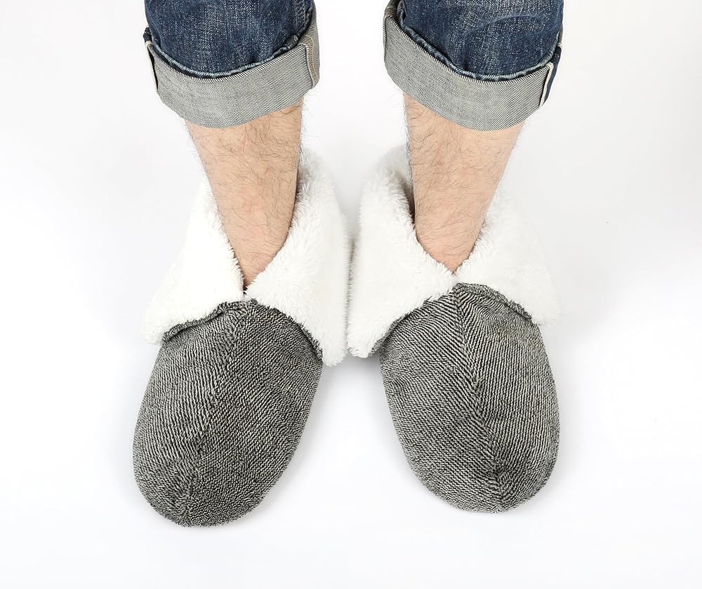 Stylish & Versatile: This versatile men's boot can be rolled up to protect the ankle or folded down for a stylish shoe look, offering dual functionality in a single design. With their sleek yet stylish design, these slipper socks seamlessly blend into any indoor attire, from loungewear to pajamas. They are not just functional but also a fashionable addition to your winter wardrobe, enhancing your overall comfort and style.