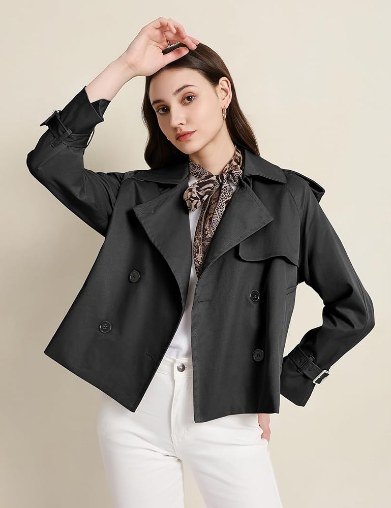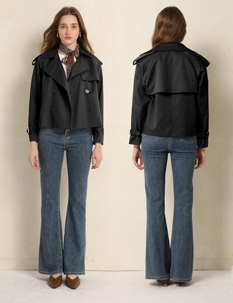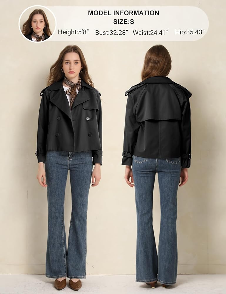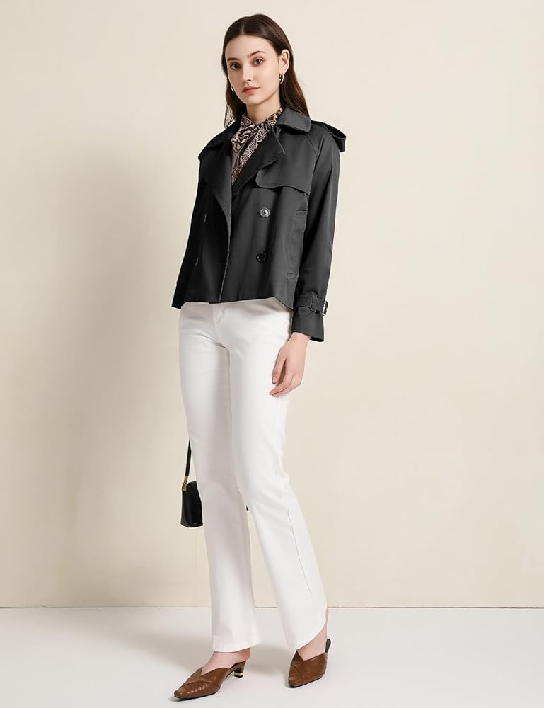 【Match】The cropped trench coat length and relaxed fit make it flattering for different body types. Pair it with tank tops, basic t shirts, high-waisted pants, midi skirts, or skinny jeans for a modern, tailored silhouette.