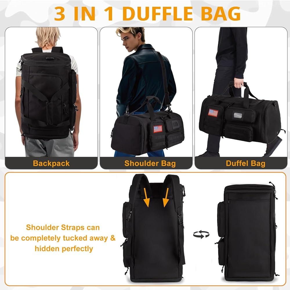 Expandable Gym Bag For Men,Tactical Large 3 in 1 Sports Duffle Bag With Shoes Compartment,Water Resistant Sports Gym Tote Bags Multi-functional Weekend Travel Backpack Overnight Bag