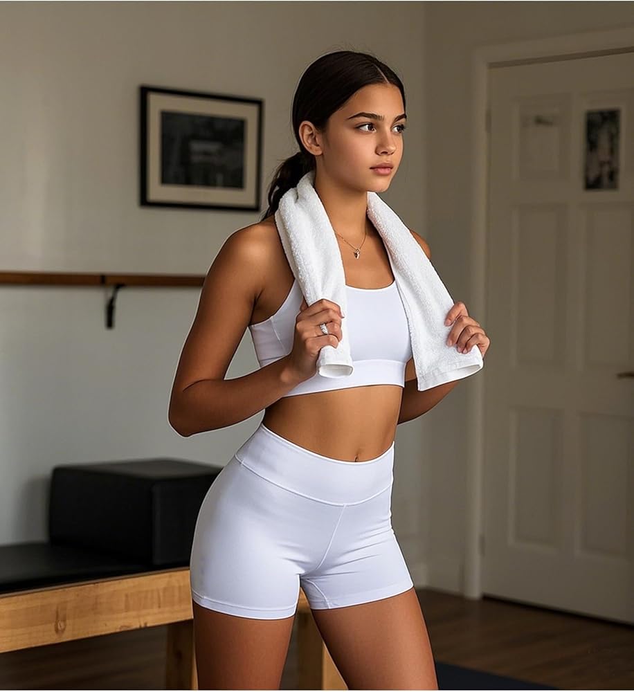 BREATHABLE MATERIAL- This athletic running shorts for girls is made of 92% Polyester, 8% Spandex, which is super soft, cozy fabric feels amazing against your skin and also stretches to move with you. This biker shorts for girls are non-sweat and quick dry, The interlock seams minimize rubbing, allowing to feel comfy all the time.