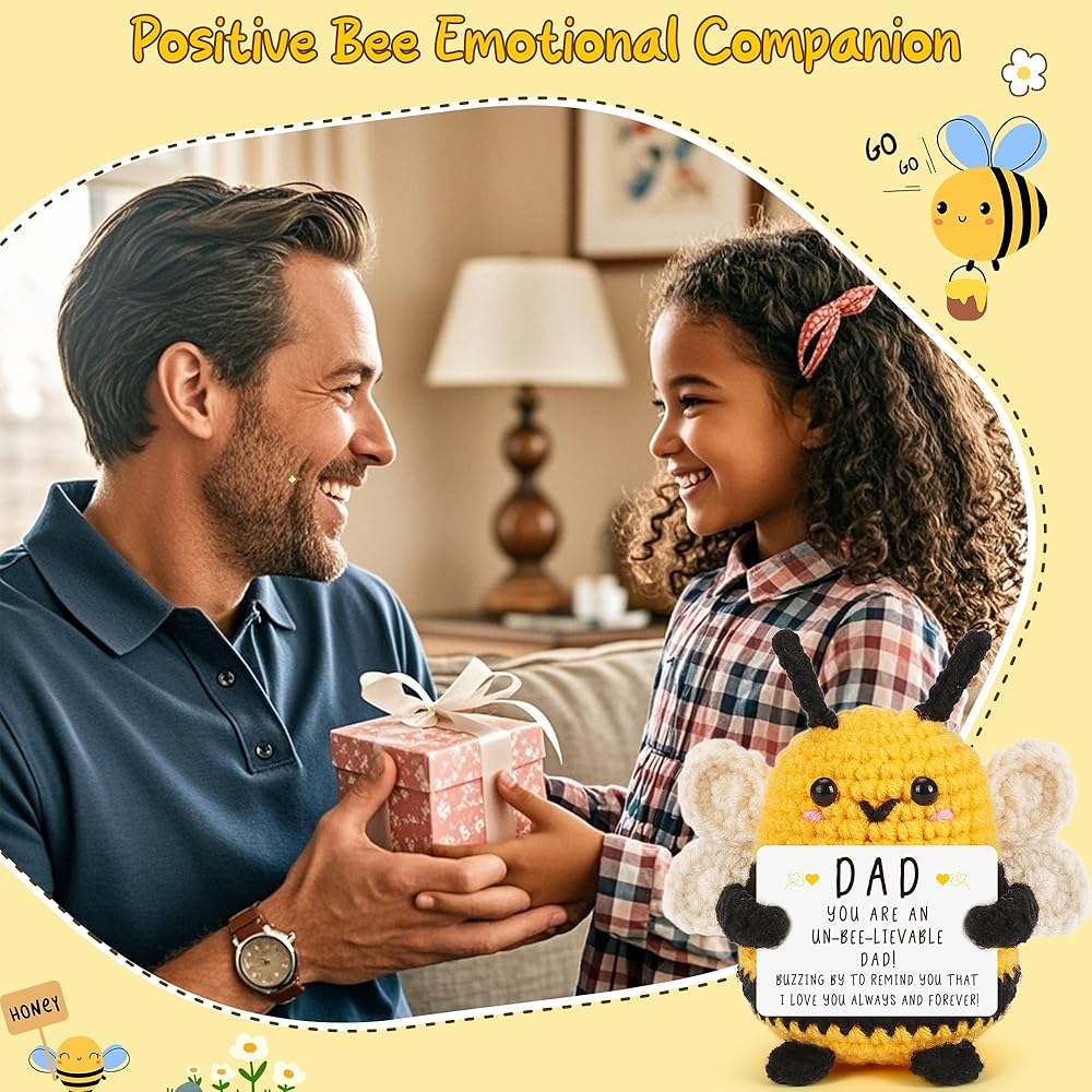 LEJIAJINW Father Fathers Day, from Daughter Son, Father's Day for Dad Birthday Gift Daddy Husband Grandpa Father-in-Law, Unique Men Anniversary Christmas Mini Cute Handmade Crochet Bee