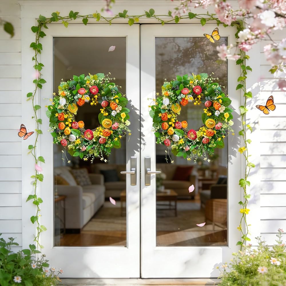 【Suitable for All Seasons】This charming wreaths for front door is bright, beautiful, and lightweight, suitable for all seasons. Its full appearance allows for easy bending and adjustment of the outer leaves to suit your preferences.