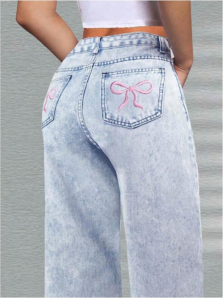 - Features: Y2k denim pants for teen girls, bow embroidery, wide leg, loose fit