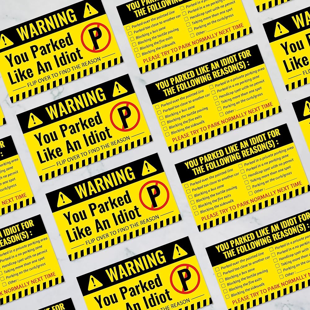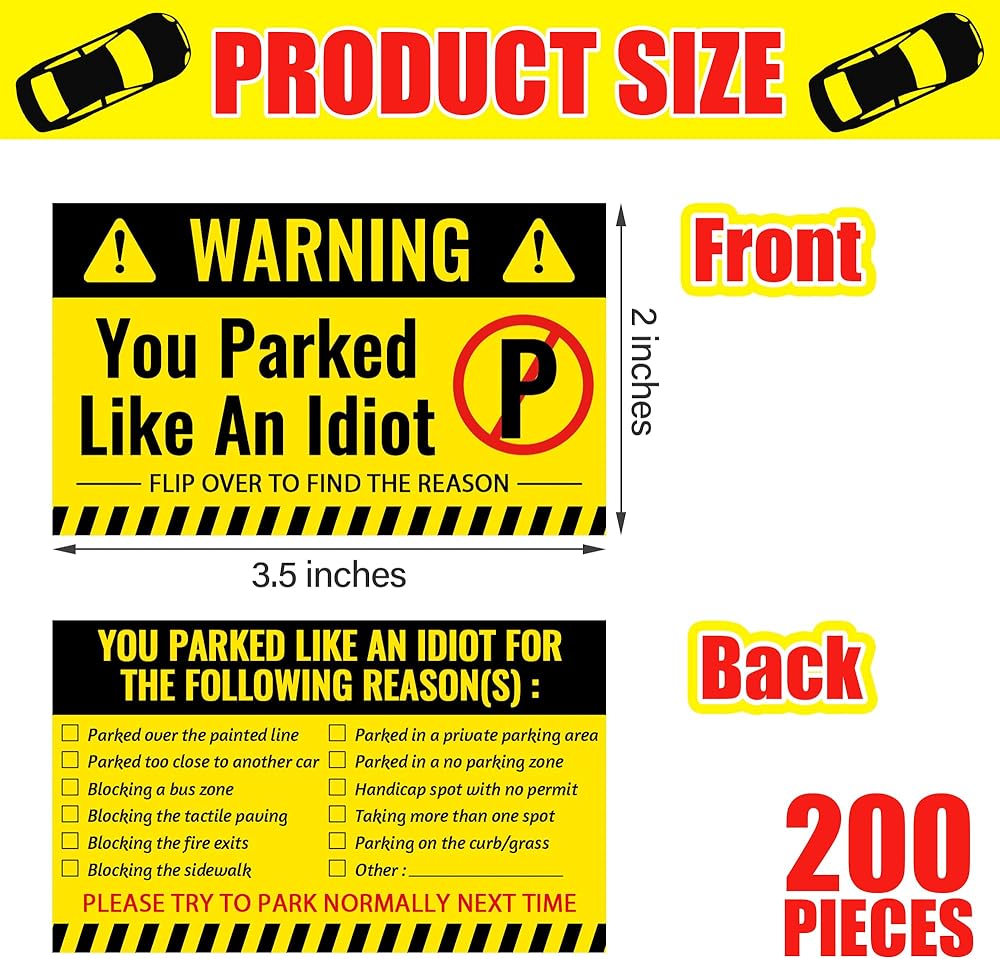 【Great Gift Choice】Every driver has been tired of someone who didn't parked correctly, so these bad parking cards are a great gift for every driver. You just write the reason for the violation on the back of the bad parking card, tell people why they parked like an idiot, leave the card under the windshield wipers of careless drivers, and make the violators aware of their mistakes.