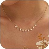 Pearl Necklace for Women Trendy,14k Gold Plated Necklace Dainty Wedding Necklace Small Cute Choker Necklace Beaded Lariat Drop Necklace Vintage Waterproof Jewelry for Women Gold Jewelry Fashion Gifts