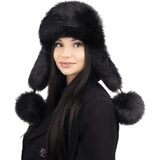 Thanks to synthetic (not genuine) leather, dense faux fur and fleece combination this ushanka looks special and ensures the best protection in any weather conditions. Ear flaps cover your cheeks, pom-poms can secure them at the top, at the back of the head or under the chin.