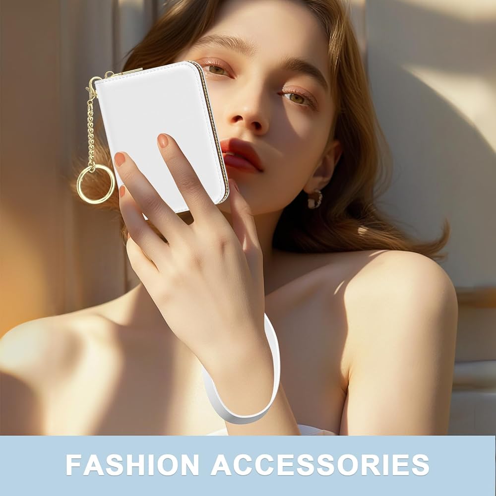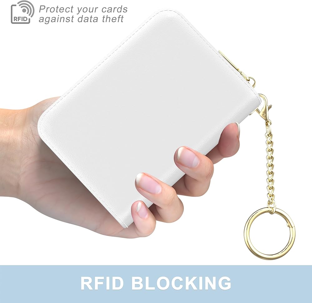 Protable and Compact Size: This slim credit card holder for women measures 4.33 x 3.15 x 0.98 inch, only 2 oz weight, fits perfectly in your pocket and purse. Comes with extra key chain for easy carry when shopping or traveling
