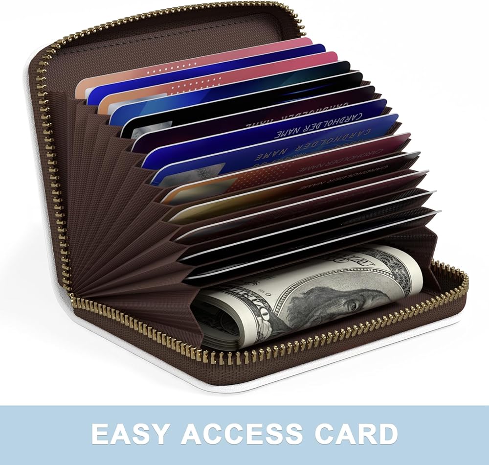 Plenty of Room: Compact card holder wallet designed with 12 card slots and each slot can hold 1 - 2 cards, perfect to hold your credit card, ID card, shopping cards and more. Specially designed with 2 extra wide slots for bills, folded cash and receipts