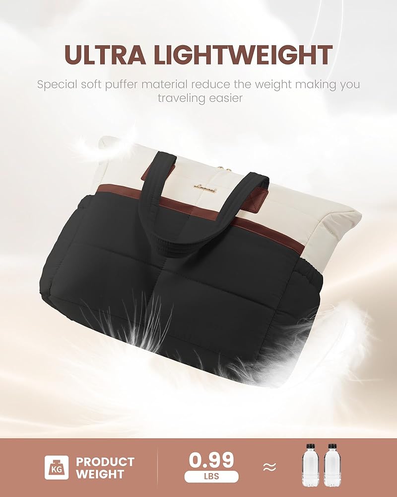 【Stylish Puffer Tote bag】Ultra lightweight puffy bag weighs only 0.99lbs.This travel tote bag is stylish, casual, and versatile, making it a perfect match with any outfit.