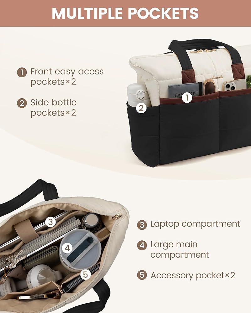 LOVEVOOK Tote Bag for Women,Light Puffer Tote Bag with Multi-pockets,Stylish Carry on Laptop Bags for Daily,Travel,Work,Gym | with Multi-pockets, Stylish, Carry on, for Daily, Travel, Work