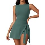 FRONT TIE DESIGN: The front tie design of the exercise dress for women adds fashion and adjustability, which can be adjusted to fit your body shape and show the curves of women. The left tie of this women tennis dress can also be tied into a bow, adding a sweet and lively feeling to the dress.