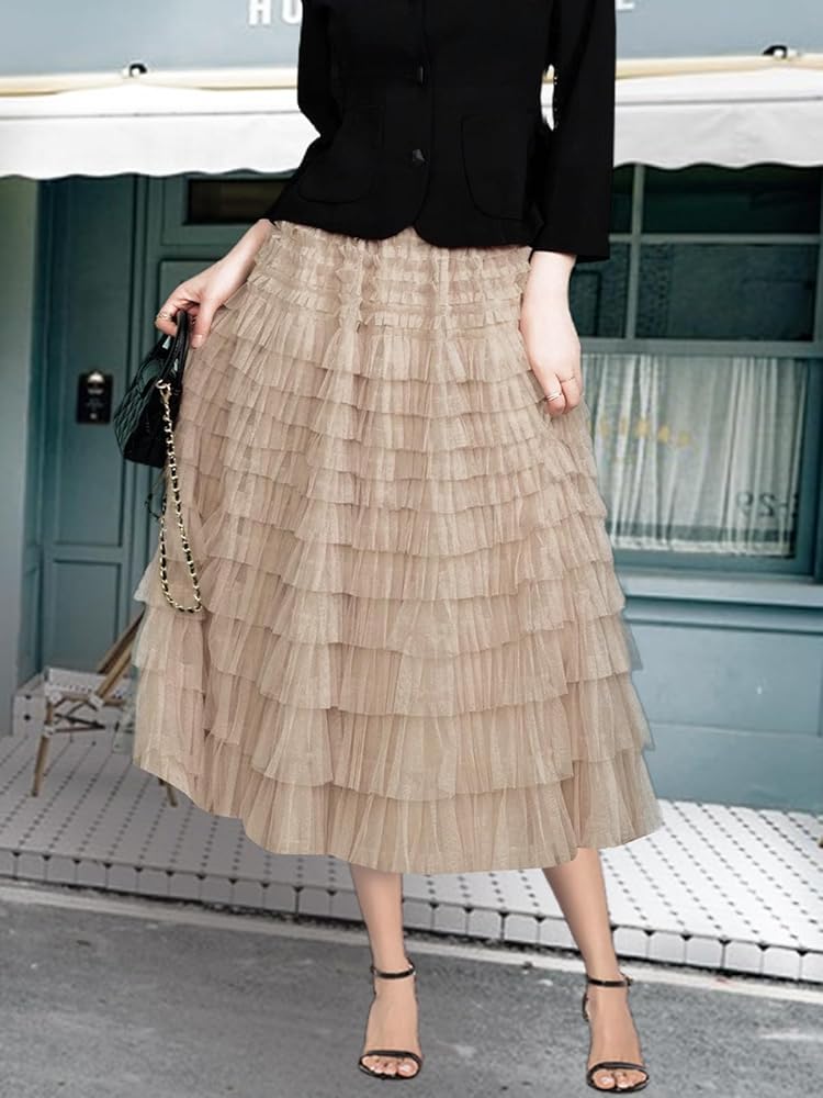【Product Features】: A-Line style, tiered design,multi layered tulle skirt. not see through, with elastic high waist,sweet,cute and fashionable, suit for women ladies teen girls, great for spring summer fall