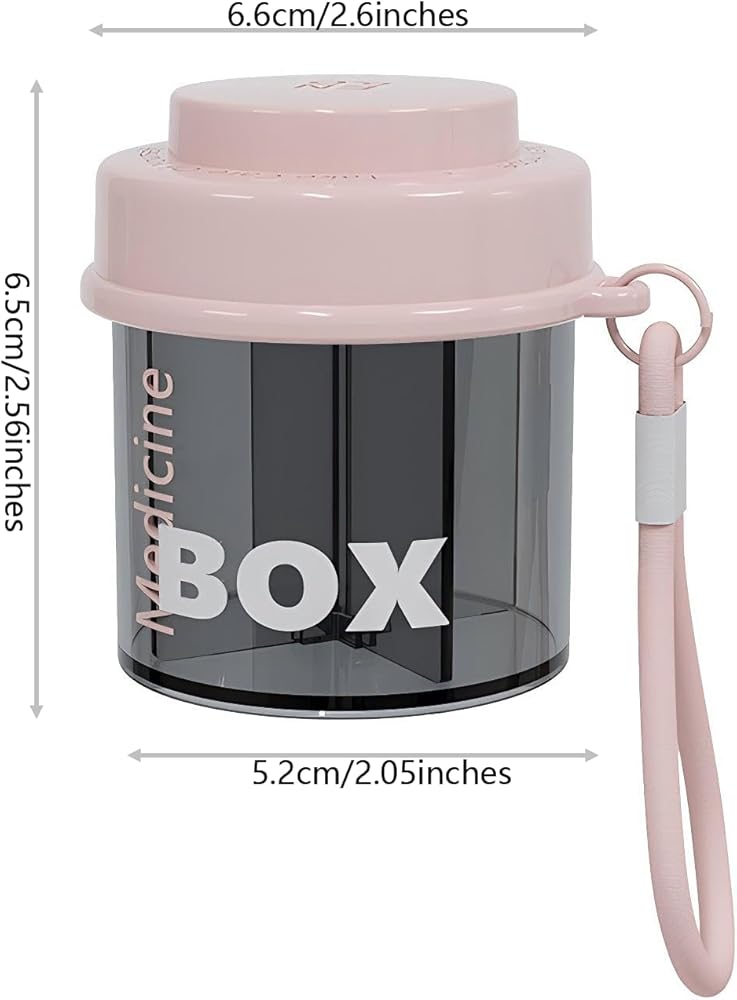 Pink Pill Box for Women Purse, Small Pill Box, Travel Pill Organizer, 4 compartments for Pill Bottles, fits in Pocket, Handbag Pill Organizer, Travel Pill case (Pink)