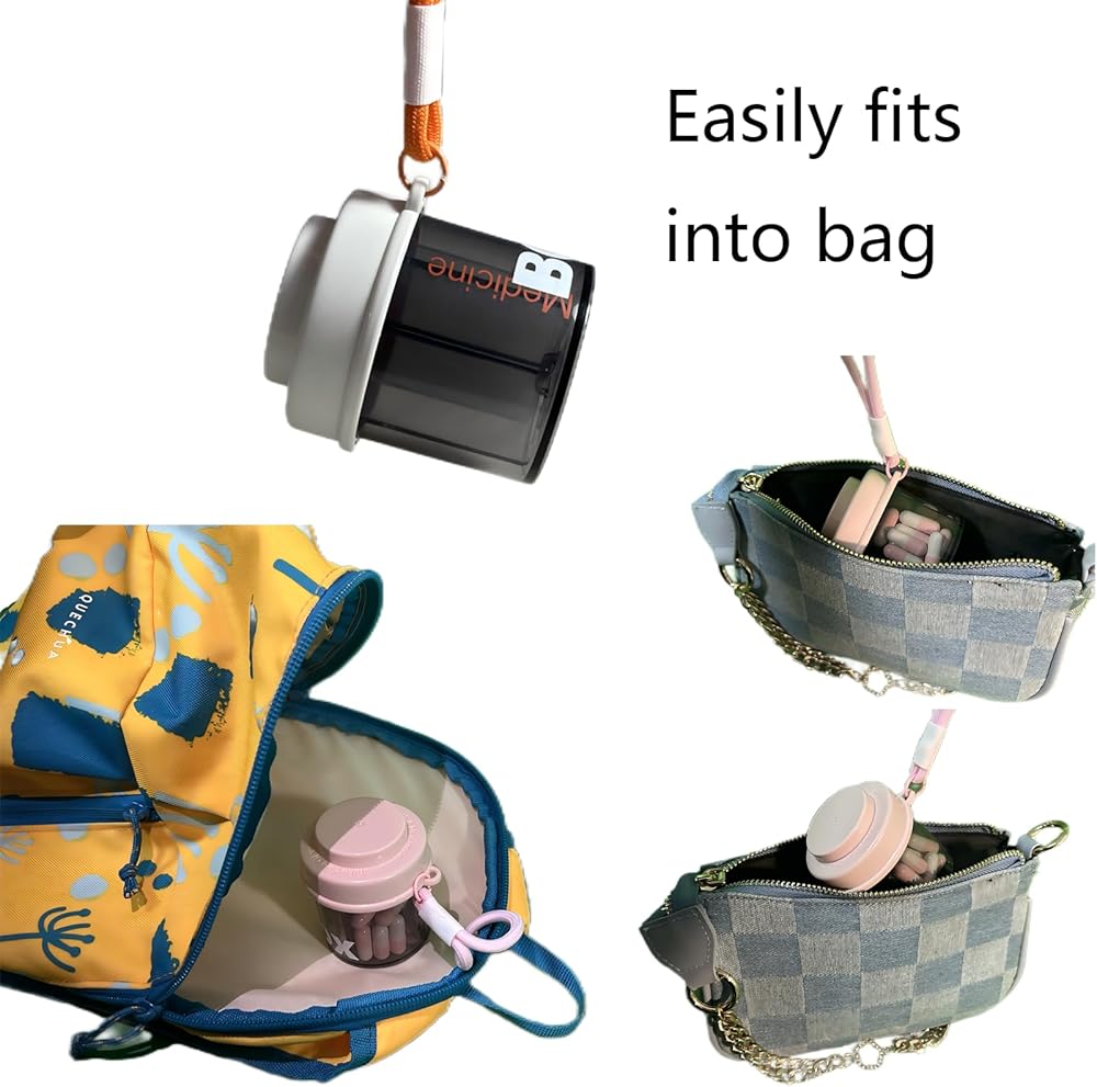 Compact & Portable Pill Organizer for Purse or Backpack With a compact size of 7.5 cm in length and a lightweight design (84 grams), this mini pill box fits perfectly in your purse, backpack, or travel bag, making it the ideal portable pill organizer for women on the go